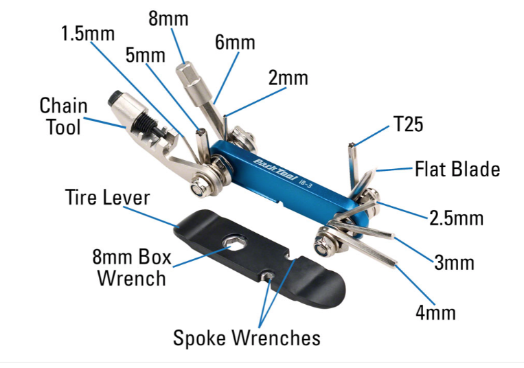 - I-Beam design with a full array of 15 emergency tools, including eight hex wrenches, a T25 Torx-compatible driver, and flat blade screwdriver, integrated chain tool is useful for emergency chain repair and can also be used for complete chain removal and installation. The composite-wrapped tire lever can be a lifesaver when dealing with a flat tire, and includes integrated spoke wrenches for triage of loose or broken spokes.